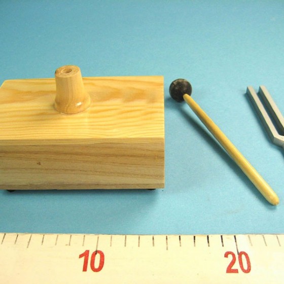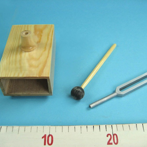 Камертон установлен на деревянной резонансной коробке.